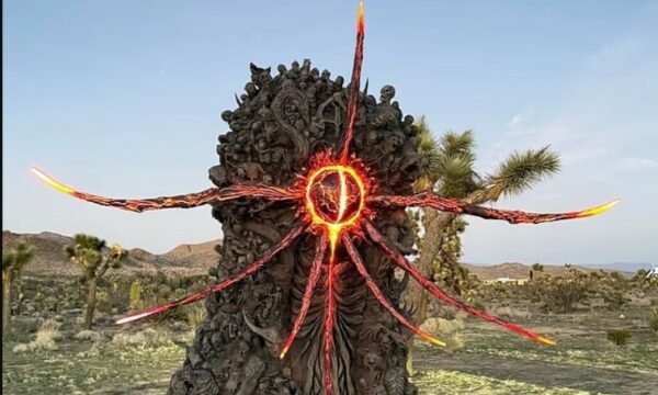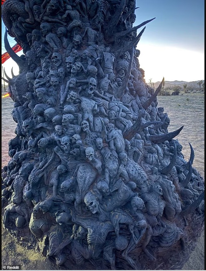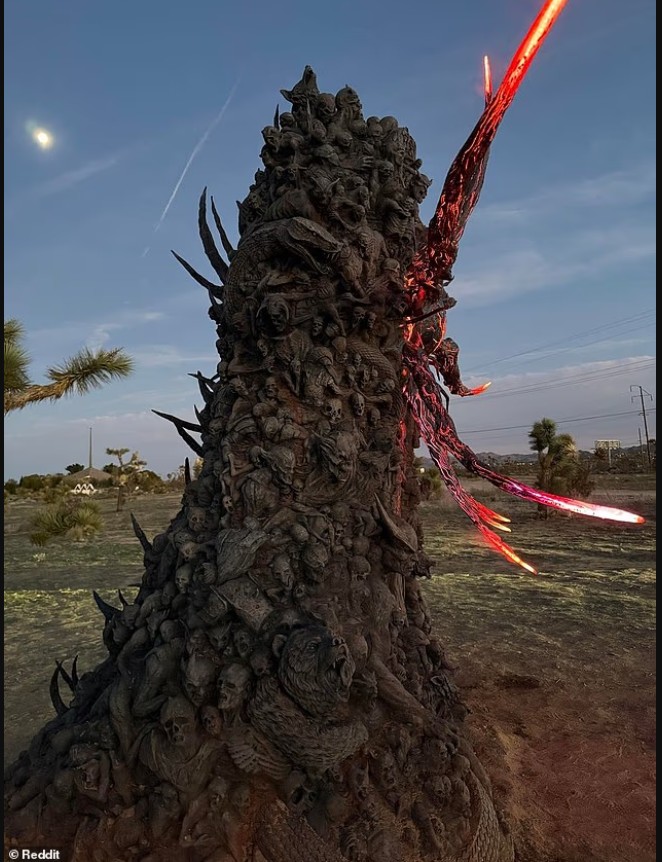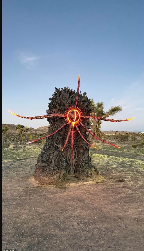 Një “monolit demonik” misterioz është shfaqur në shkretëtirën e Kalifornisë, i zbukuruar me fytyra që ulërijnë, trupa të përdredhur, gjarpërinj dhe një sy gjigant të gdhendur në qendër.