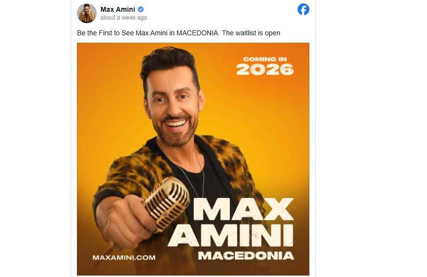 Bëhu i pari që e sheh Max Aminin në MAQEDONI. Lista e pritjes është e hapur