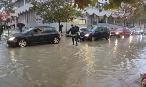 Siç shihet edhe në video uji ka mbuluar disa prej rrugëve në Durrës, duke vështirësuar qarkullimin e mjeteve.