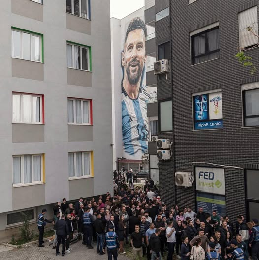 Një mural i madh i superyllit të futbollit, Lionel Messi, është shfaqur së fundmi në Albania, duke tërhequr menjëherë vëmendjen e qytetarëve dhe tifozëve të futbollit.