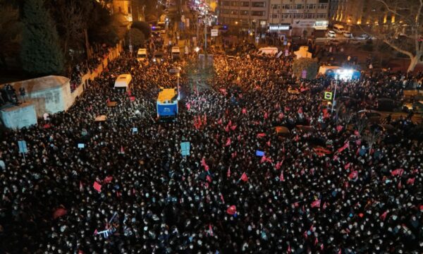 Mijëra njerëz u mblodhën jashtë bashkisë për të dëgjuar fjalimin e kreut të CHP, Özgür Özel. Ozel në ndërhyrjen e tij tha se vendimi për arrestimin e kryebashkiakut “ishte një grusht shteti”.