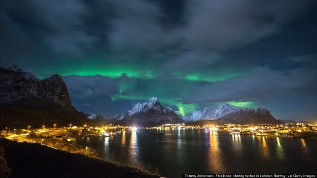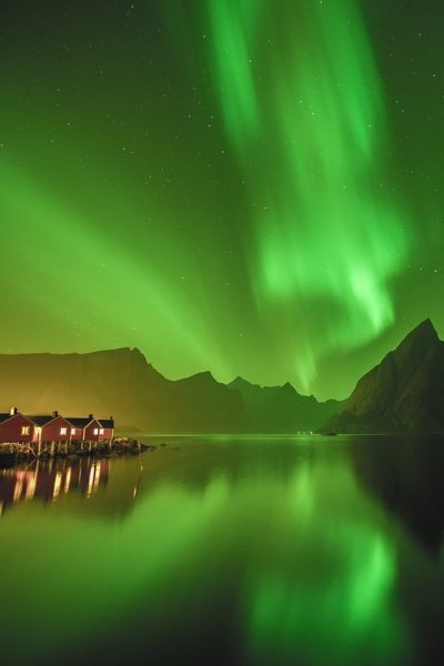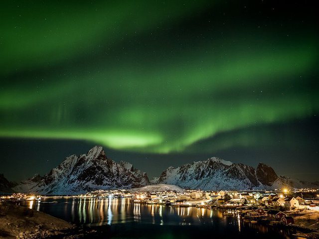 Në Reine kemi shfaqjen më mbresëlënëse të fenomenit natyror që quhet “Dritat e veriut”.
