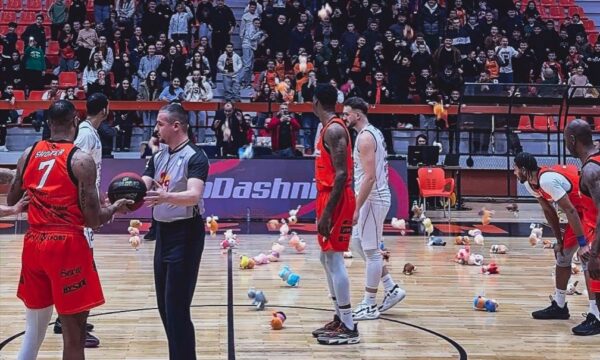 Në vend të gjësendeve të hedhura me mllef, në parket u hodhën arushë të butë nga fëmijët, si simbol i paqes, respektit dhe sportivitetit.