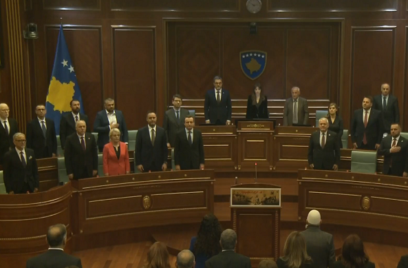 Në Kuvend u intonua himni shtetëror dhe ai kombëtar, ndërsa po merr pjesë edhe Rifat Jashari nga familja Jashari.