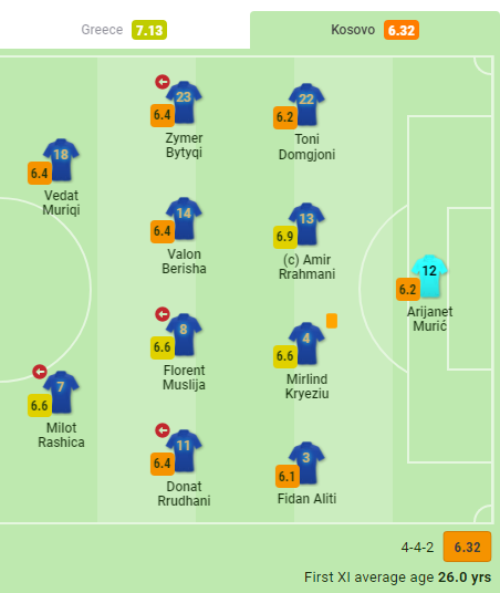 Nota e përgjithshme e Kosovës sonte ishte 6.32, ndërsa më i vlerësuari ishte kapiteni Amir Rrahmani me notë 6.9.