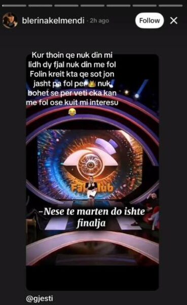 Xheneta Fetahu ka deklaruar se Gjesti “nuk di t’i lidhë dy fjalë’. Kjo deklaratë e saj është komentuar nga e motra e Gjestit, Blerina, e cila ka reaguar nëpërmjet disa postimeve në ‘Instastory’.