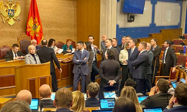 Pasi kryetari i Kuvendit, Andrija Mandiq, hapi seancën, deputetët e opozitës u ngritën nga vendet e tyre dhe dolën para tij.