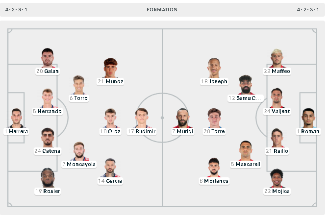 Janë publikuar formacionet zyrtare për ndeshjen mes Osasuna dhe RCD Mallorca, e vlefshme për javën e 27-të të La Liga.
