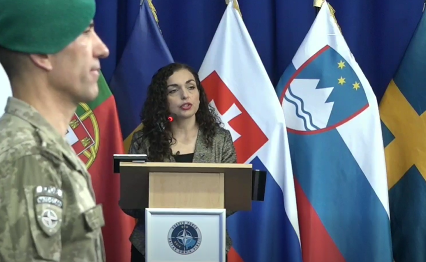 Presidentja e Kosovës, Vjosa Osmani, sot ka folur gjatë ceremonisë ndërrimit të komandës së KFOR-it në Kosovë, ku gjenerali turk Ozkan Ulutas do të rikthehet në këtë detyrë pasi Enrico Barduani ka përfunduar mandatin.