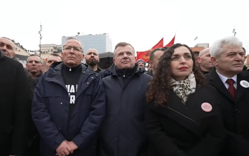 Osmani u fut mes protestuesve, duke përshëndetur kryetarin e PDK-së, Bedri Hamza dhe Endrit Thaçin, dajlin e ish-presidentit Hashim Thaçi.