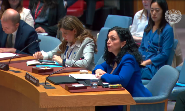 Presidentja e Kosovës e ka marrë Elhame Muqollin, të mbijetuarën e masakrës së Poklekut në seancën e Këshillit të Sigurimit të OKB-së në New York, për të treguar se si forcat serbe kishin vrarë dhe djegur edhe foshnje për së gjalli në tmerrin që ajo i mbijetoi.