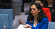 Presidentja e Kosovës, Vjosa Osmani, në Këshillin e Sigurimit të Kombeve të Bashkuara ia ka përmendur presidentit serb Aleksandër Vuçiq krimet e kryera në Kosovë. Osmani me vete kishte katër gra që janë viktima të luftës. Ajo i ka kërkuar presidentit serb Vuçiq që të kërkojë falje për krimet e kryera. “z. Vuçiq, mu këtu … Continue reading Osmani – Vuçiqit: Kërko falje, trego së paku një shenjë të humanitetit që ka mbetur në ty