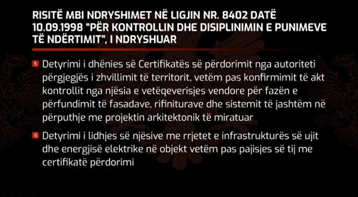 Pastaj vjen detyrimi për dhënien e certifikatës. Kemi shtuar dhe detyrimin që uji dhe dritat të lidhen vetëm pas marrjes së certifikatës së përdorimit.