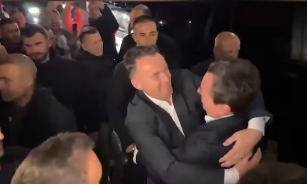 Kryeministri në detyrë, Albin Kurti, e ka përqafuar fort kandidatin Faton Peci pas arritjes së tij në Mitrovicë.