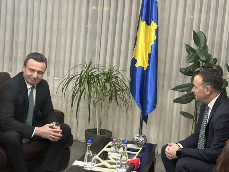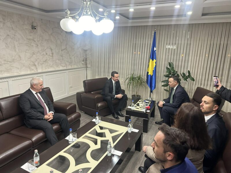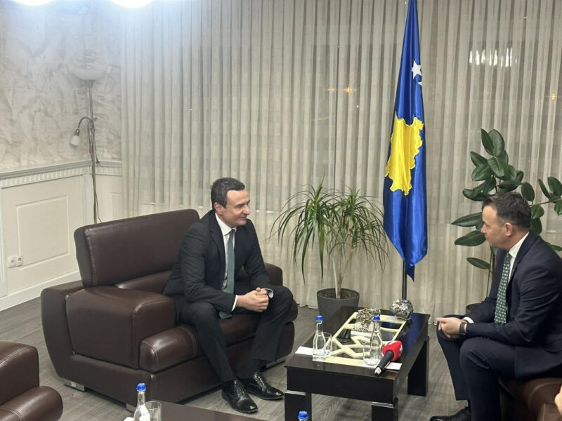 Kryeministri në detyrë, Albin Kurti, është pritur në takim nga kryetari i ri i Mitrovicës së Jugut, Faton Peci, në zyrën e këtij të fundit.
