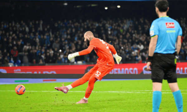 Një goditje e rrallë që po bën xhiron e botës — dhe një moment spektakolar për portierin e Napolit. /GazetaExpress