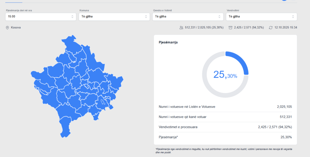 KQZ në përditësimin e fundit ka bërë të ditur se deri më tani kanë marr pjesë 25,30 % e qytetarëve të vendit.