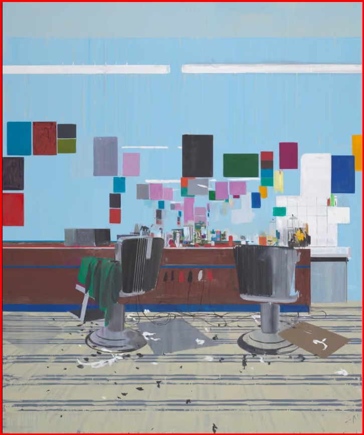 I vetmi vend ku kjo tension ndalet është berberhana – një hapësirë që ai e paraqet si të shenjtë për komunitetin afro-britanik. Aty, njerëzit gjejnë përkatësi dhe qetësi. Në disa piktura, ajo është e zbrazët dhe e qetë; në të tjera, e mbushur me figura dhe pasqyra që shumëfishojnë identitetet.