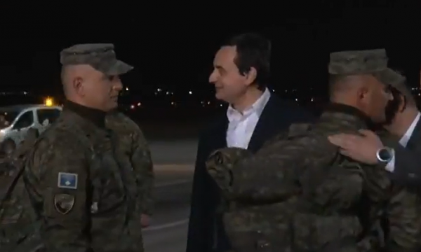Pjesëtarët në aeroportin Prishtinës janë pritur nga kryeministri, Albin Kurti, ministri i Mbrojtjes, Armend Mehaj dhe komandanti i FSK-së, Bashkim Jashari.