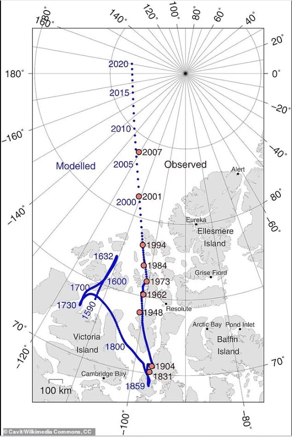 Bota njeh një pikë të quajtur Poli i Veriut gjeografik (ose “veriu i vërtetë”), i cili ndodhet në majë të boshtit rrotullues të Tokës. Por ekziston edhe Poli i Veriut magnetik, i cili nuk është i fiksuar dhe ka lëvizur për shekuj me radhë mbi territorin e Kanadasë veriore.