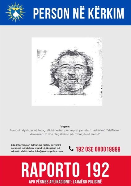 Policia e Kosovës ka publikuar fotografinë e një personi të kërkuar për “Mashtrim”, “Falsifikim të dokumenteve” dhe “Legalizm i rremë”.
