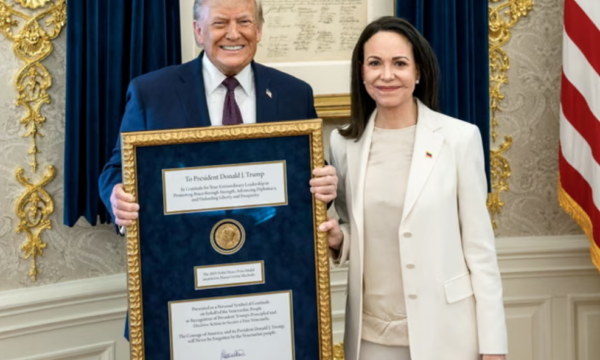 Fituesja e Nobelit i dha medaljen Trumpit të enjten në Shtëpinë e Bardhë “si njohje për angazhimin e tij unik për lirinë tonë”. Disa orë më vonë, Trump shkroi në Truth Social se Machado “më i dhuroi medaljen e saj Nobel për Paqe për punën që kam bërë. Një gjest kaq i mrekullueshëm respekti të ndërsjellë.”