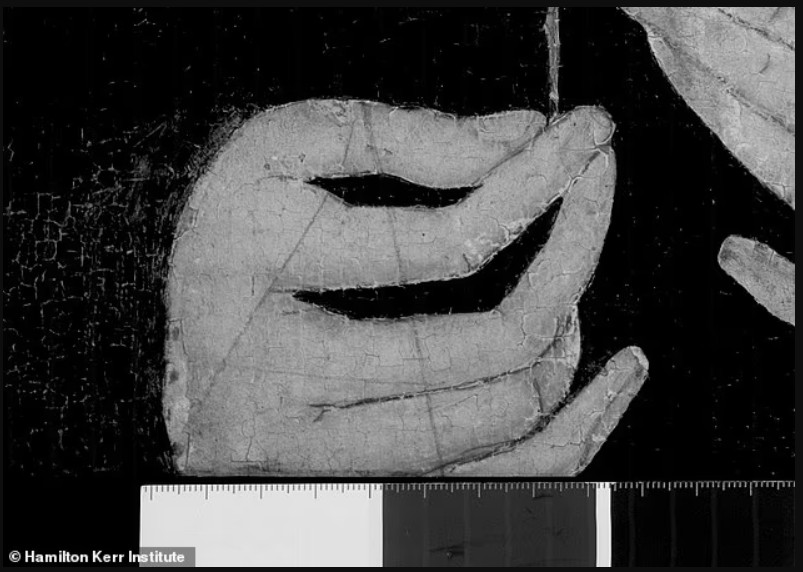 Kuratorët thonë se kanë identifikuar momentin kur artisti ka devijuar nga modeli standard i kohës, duke vizatuar qartë duart e mbretëreshës pa asnjë gisht shtesë.