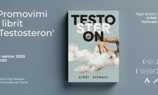 Arbër Selmani do të promovoj librin e ri me tregime dhe copëza, “Testosteron”, që do të mbahet më 13 nëntor 2025, në ora 19:00, në Soma Vinyl Station, te Piramida në Tiranë.