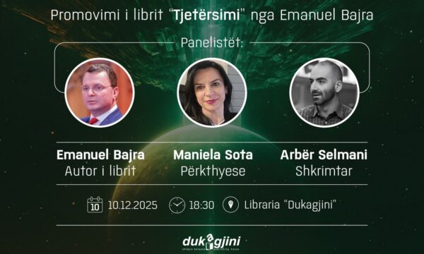 Libri “Tjetërsimi: Mbretërimi i shkurtër në Tokë i Gongolit të Tretë” nga autori Emanuel Bajra, do të promovohet më 10 dhjetor, në orën 18:30, në librarinë “Dukagjini”, në Prishtinë. Ky botim përfaqëson një pikë kthese në krijimin e një hapësire të re për letërsinë spekulative në kulturën tonë letrare.