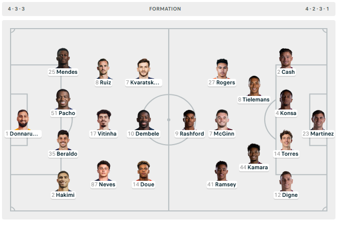 Janë publikuar formacionet zyrtare të ndeshjes mes Paris Saint-Germain dhe Aston Villas.