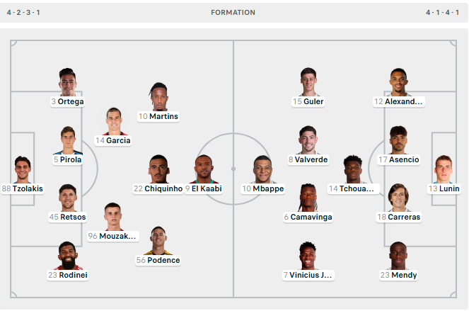 Janë publikuar formacionet zyrtare të ndeshjes mes Olympiacos dhe Real Madrid, duel i vlefshëm për javën e katërt në fazën e ligës së Ligës së Kampionëve.