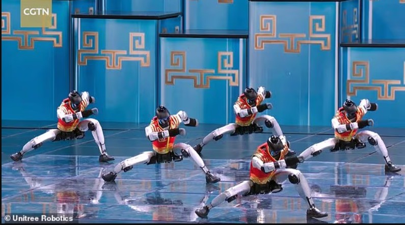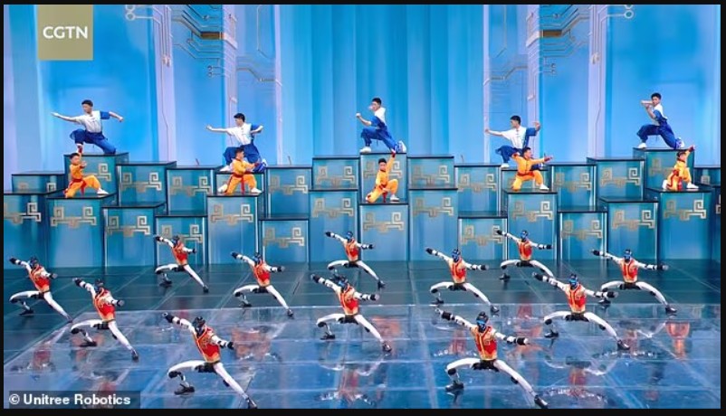 Dhjetëra robotë të kompanisë Unitree u ngjitën në skenë gjatë Gala Festivalit të Pranverës në CCTV, shfaqja më e ndjekur televizive në Kinë.