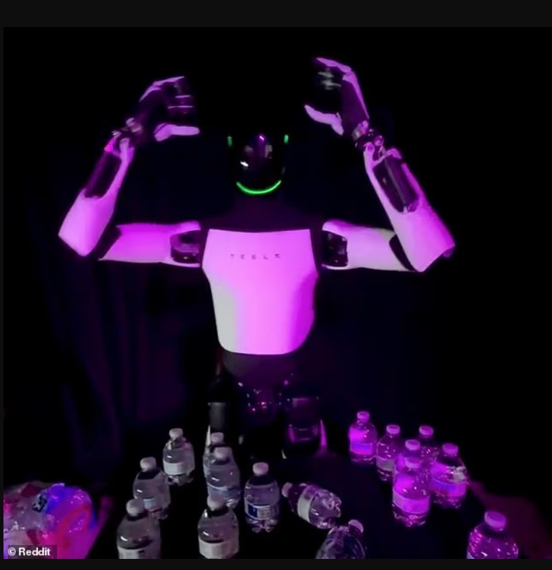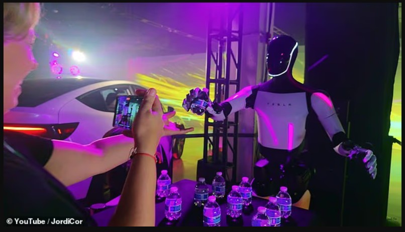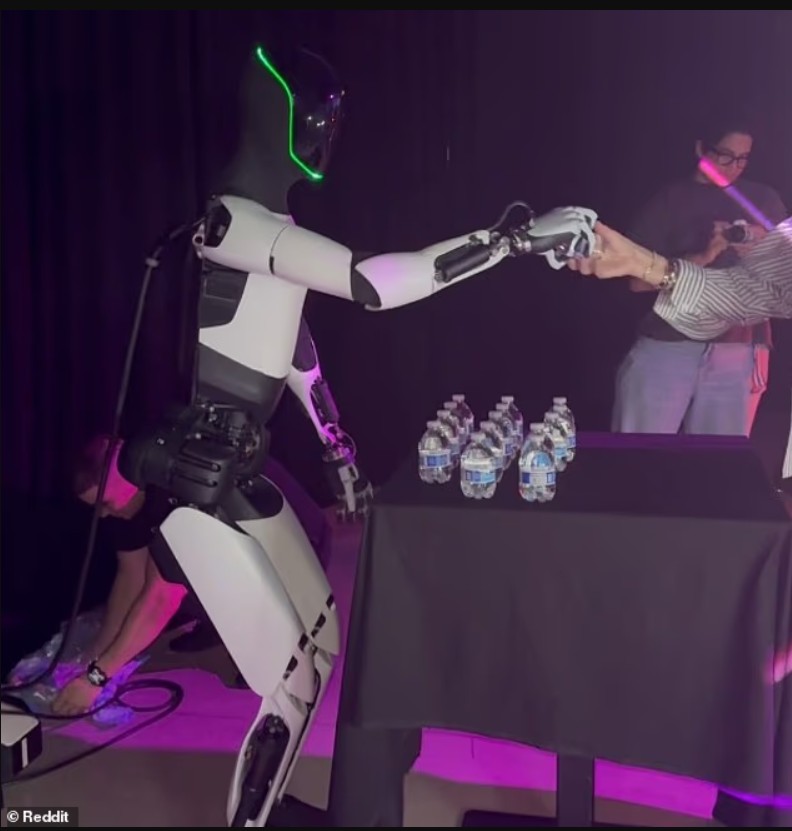 Pamjet janë regjistruar nga një përdorues i Reddit, i cili po filmonte Optimus-in teksa shpërndante shishe ujë gjatë eventit “Tesla – The Future of Autonomy Visualized” në Miami.