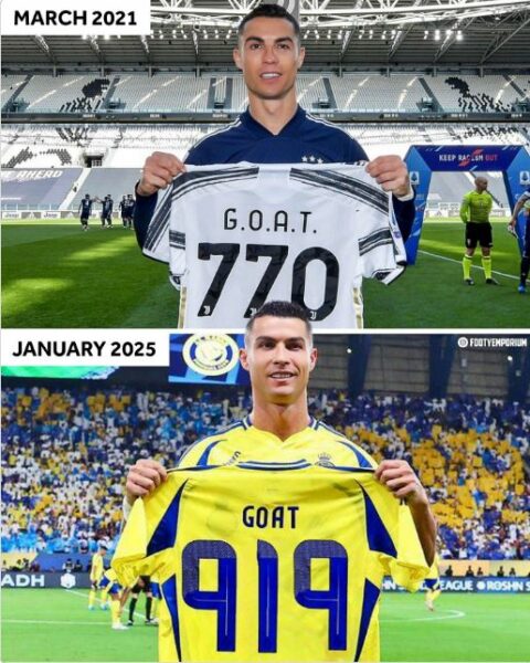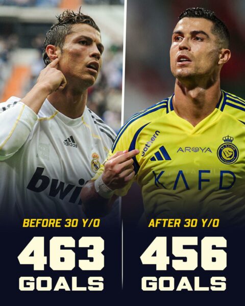 Ndërsa, “monstrumi i futbollit” i ka shënuar 150+ gola mes moshës 36-39 vjeç në gara e liga të ndryshme si Premierliga, Serie A, Saudi Pro League, Kampionati Evropian, Kupa e Botës, Liga e Kampionëve etj…