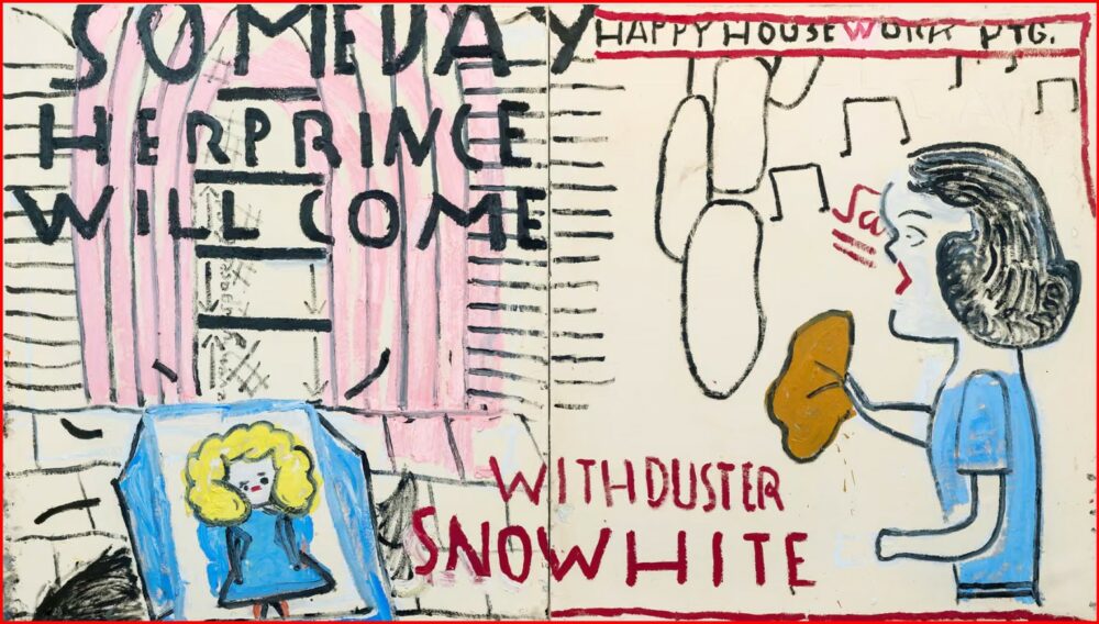 Pikturat e saj janë të drejtuara jo nga tema apo autobiografia, por nga imazhet që i tërheqin vëmendjen – nga mozaikët romakë, TV-ja apo arti i Rilindjes së hershme. Një rrugë e lakuar në kopshtin e saj bëhet armë, pastaj një homazh për filmin e Werner Herzog, My Son, My Son, What Have Ye Done? Ajo vendos dy gra mbi krahët e bombës, thjesht “për kënaqësi”.