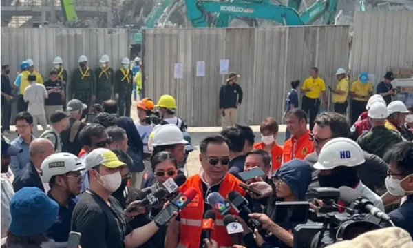 Në Tajlandë, zëvendëskryeministri i vendit ka folur me gazetarët pasi vizitoi vendin e një ndërtese të lartë në Bangkok që u shemb nga tërmeti.
