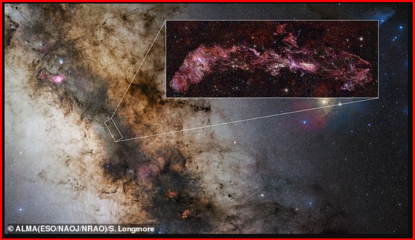 Dr Barnes shton: “Tregon një zonë që po ridizenjohet vazhdimisht nga gravitacioni dhe ciklet e jetës së yjeve të mëdhenj, dhe ndërveprimet e tyre me objekte ekzotike si vrimat e zeza. Imazhi tregon një rrjet të gjerë filamentesh të gjata të gazit që shtrihen mbi qindra vite drite, re të dendura ku po formohen yje të rinj, dhe hapësira të mëdha të zbrazëta të krijuara nga shpërthimet e fuqishme yjore.”