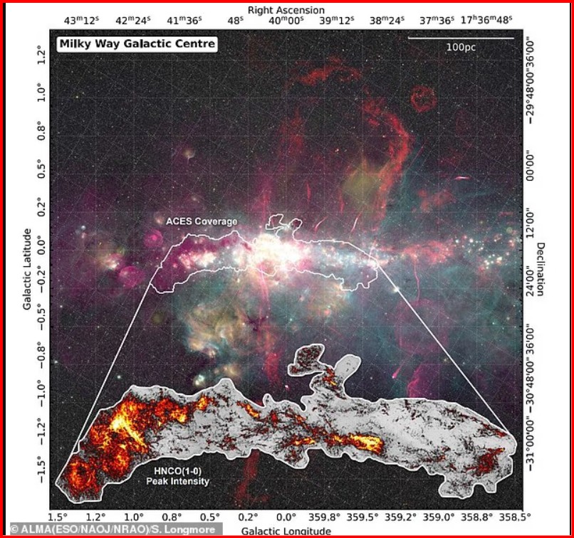 Imazhi kolosal kap 650 vite drite të Zonës Molekulare Qendrore (CMZ) – një nga mjediset më ekstreme në të gjithë galaksinë.