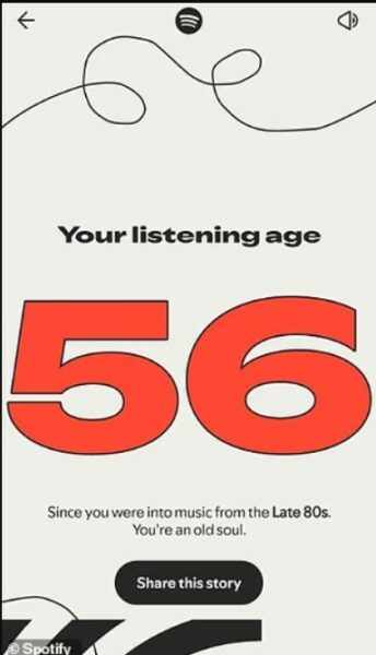 Shembull: Nëse dëgjon më shumë muzikë nga fundi i viteve ’70, Spotify mund të llogarisë “listening age” rreth 63 vjeç, sa do të kishte qenë një person që ishte në adoleshencë në ato vite.
