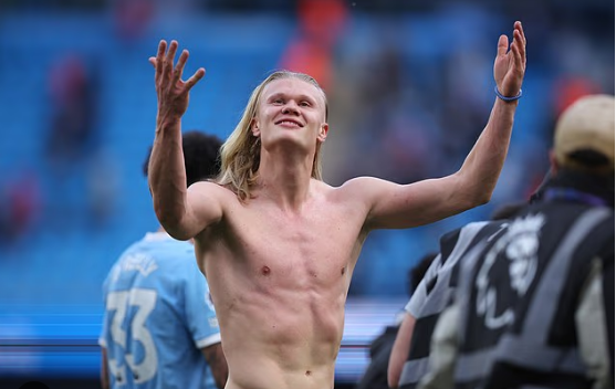 Pas vërshëllimës përfundimtare në “Etihad”, Erling Haalandi e dinte se misioni i tij kishte përfunduar. Ai i liroi flokët e gjatë, hoqi fanellën dhe festoi me tifozët e Manchester Cityt.