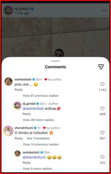 Ajo që ra më shumë në sy ishte komenti i Selinit: “Pres unë…”. Reagimi i menjëhershëm i Gimbos – “Erdhaa”, i shoqëruar me një emoji puthje – u interpretua nga ndjekësit si një konfirmim indirekt se marrëdhënia mes tyre vazhdon.