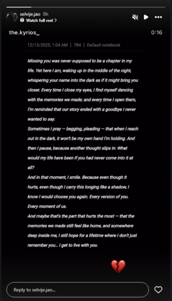 Dhe ndoshta kjo është pjesa që dhemb më shumë, që kujtimet që krijuam ende ndihen si shtëpi, dhe diku thellë brenda meje, ende shpresoj për një jetë ku nuk do të të kujtoj vetëm… Do të jetoj me ty”