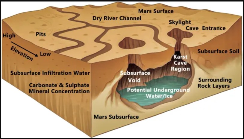 Shkencëtarët që po studiojnë rrjetin e ndërlikuar të shpellave në Planetin e Kuq thonë se kanë identifikuar tetë shpella karstike, të gdhendura nga rrjedha uji tashmë të zhdukura. Studimi është botuar në revistën prestigjioze Astrophysical Journal Letters dhe sugjeron se këto struktura mund të jenë ndër vendet më premtuese për kërkimin e jetës jashtëtokësore.