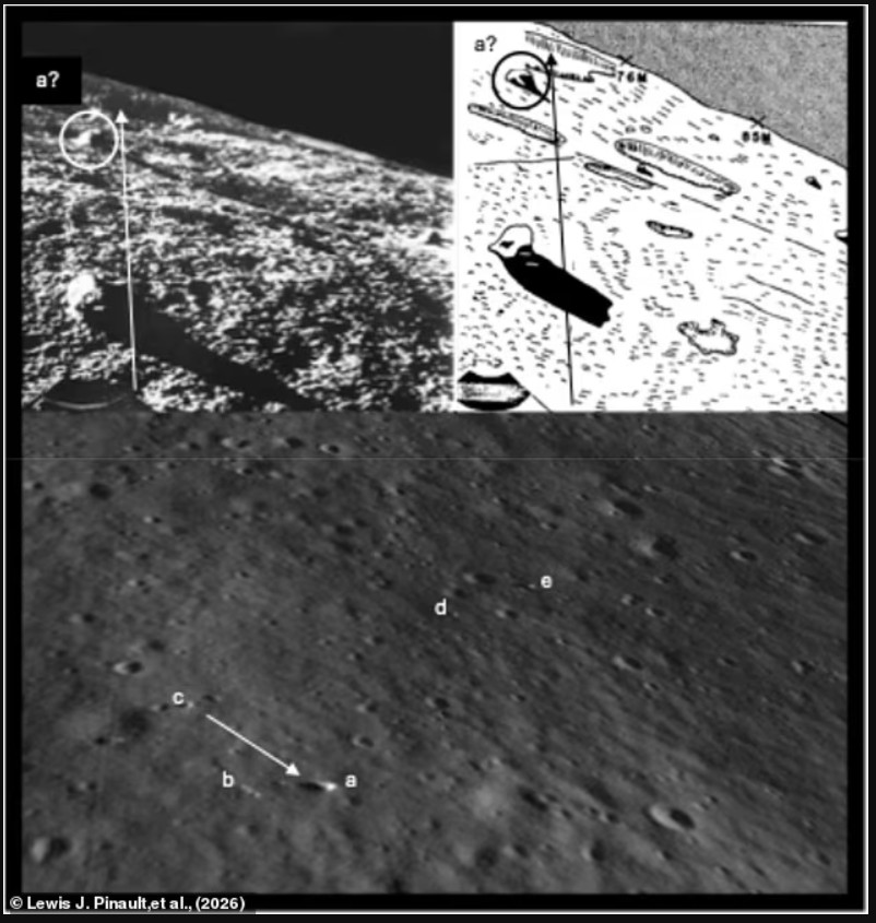 Algoritmi i quajtur YOLO–ETA (“You–Only–Look–Once—Extraterrestrial Artifact”) identifikoi disa shenja të pazbuluara më parë në sipërfaqe. Zona ndodhet në Oceanus Procellarum dhe tregon shqetësime në tokë që mund të jenë shkaktuar nga zbritja e turbulente e Luna 9.