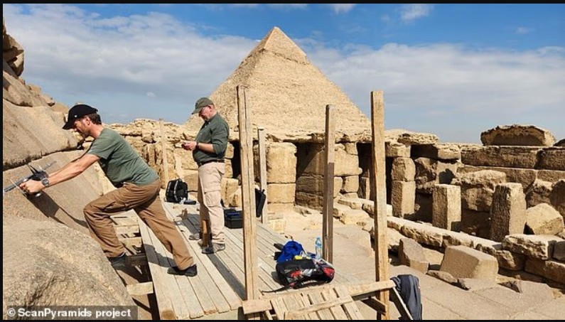 Ekspertë nga Egjipti dhe Gjermania përdorën metoda të avancuara skanimi jo-invaziv për të parë prapa gurëve të granitit të piramidës. Ata raportojnë se kanë zbuluar dy hapësira të mbushura me ajër, të cilat mund të tregojnë për një hyrje të fshehtë që nuk ishte zbuluar më parë.
