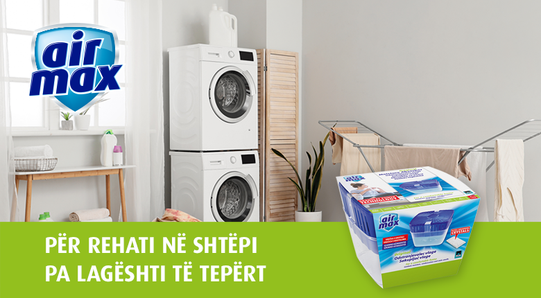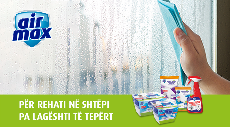 Një zgjidhje e besueshme në luftën kundër lagështisë së tepërt është absorbuesi i lagështisë Air Max® që shtyp kondensimin, lagështinë, mykun dhe aromat e pakëndshme. Absorbuesit e lagështisë Air Max® kontribuojnë në vendosjen e një ekuilibri të mirë të lagështisë në shtëpi duke reduktuar lagështinë e tepërt në një nivel optimal në ambientet e banimit si dhomat e gjumit, kuzhina, dhomat e ndenjes dhe banjot, por edhe në bodrume, garazhe etj. Të përshtatshme janë për përdorim gjatë gjithë vitit.
