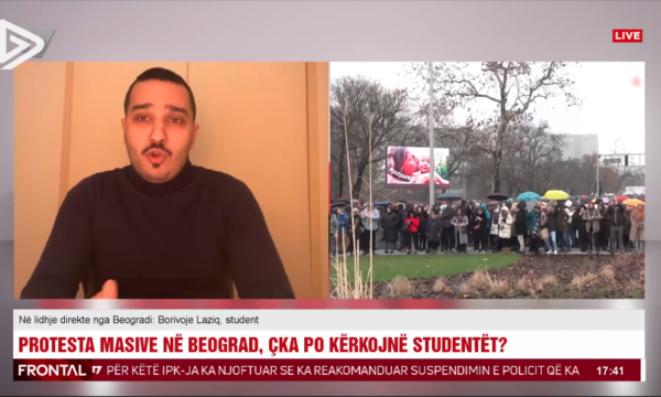 Studenti Borivoje Laziq në një intervistë në emisionin “Frontal” me Arsim Lanin në T7 ka thënë se po vazhdojnë protestat masive në Beograd dhe si rrjedhojë edhe bllokadat.
