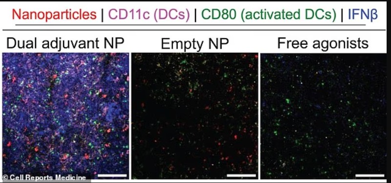 Një version i dytë i vaksinës përfshinte nanopartikula dhe një antigen tjetër, të quajtur tumor lysate. Tek ky grup: