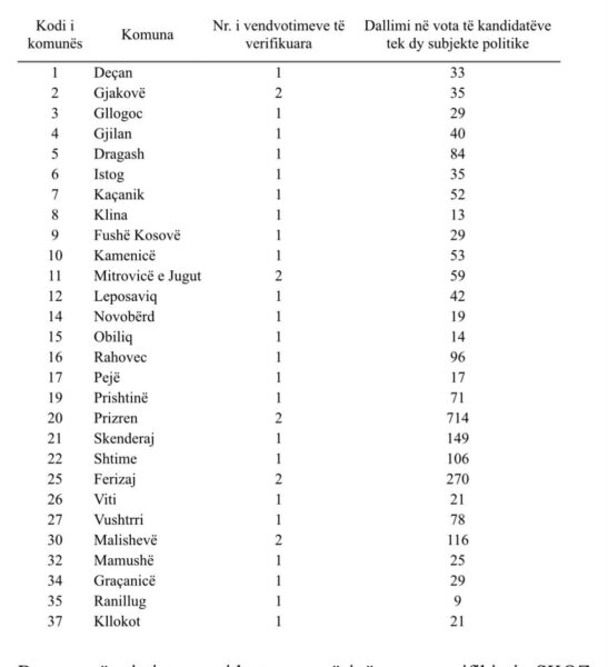 Më poshtë e gjeni edhe listën e dallimit në vota nga verifikimi i votave që është bërë në komuna: