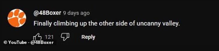 Disa e kanë cilësuar si “kalimi përtej Uncanny Valley”, ku robotët bëhen aq të ngjashëm me njerëzit sa truri i njeriut ndien pakësim të komoditetit.